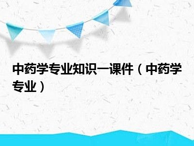 大家好,小陆来为大家解答以上的问题。中药学专业知识一课件,中药学专业这个很多人还不知道,现在让我们一起来看看吧!
