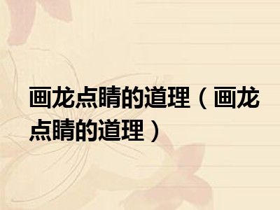 大家好,小陆来为大家解答以上的问题。画龙点睛的道理,画龙点睛的道理这个很多人还不知道,现在让我们一起来看看吧!