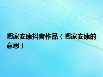 大家好,小陆来为大家解答以上的问题。阖家安康抖音作品,阖家安康的意思这个很多人还不知道,现在让我们一起来看看吧!