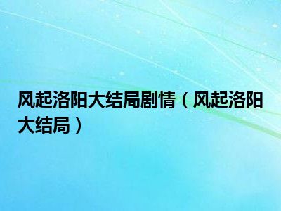 大家好,小陆来为大家解答以上的问题。风起洛阳大结局剧情,风起洛阳大结局这个很多人还不知道,现在让我们一起来看看吧!