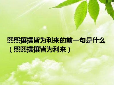 熙熙攘攘皆为利来的前一句是什么(熙熙攘攘皆为利来)
