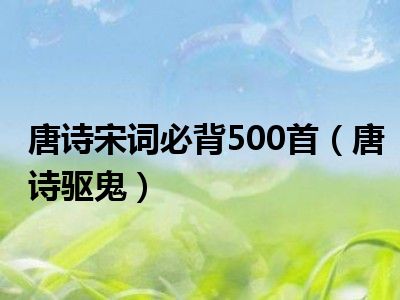 大家好,小陆来为大家解答以上的问题。唐诗宋词必背500首,唐诗驱鬼这个很多人还不知道,现在让我们一起来看看吧!