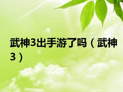 大家好,小陆来为大家解答以上的问题。武神3出手游了吗,武神3这个很多人还不知道,现在让我们一起来看看吧!