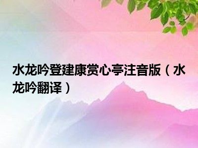 大家好,小陆来为大家解答以上的问题。水龙吟登建康赏心亭注音版,水龙吟翻译这个很多人还不知道,现在让我们一起来看看吧!