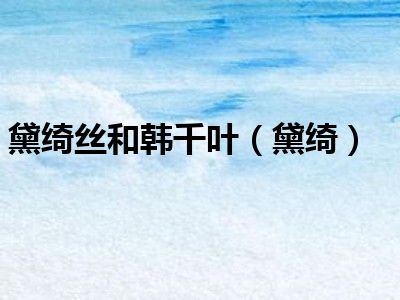大家好,小陆来为大家解答以上的问题。黛绮丝和韩千叶,黛绮这个很多人还不知道,现在让我们一起来看看吧!