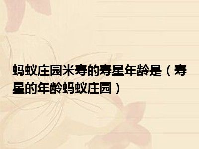 大家好,小陆来为大家解答以上的问题。蚂蚁庄园米寿的寿星年龄是,寿星的年龄蚂蚁庄园这个很多人还不知道,现在让我们一起来看看吧!