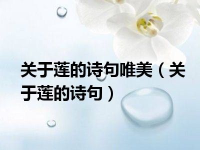 大家好,小陆来为大家解答以上的问题。关于莲的诗句唯美,关于莲的诗句这个很多人还不知道,现在让我们一起来看看吧!