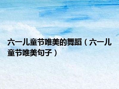 六一儿童节唯美的舞蹈(六一儿童节唯美句子)