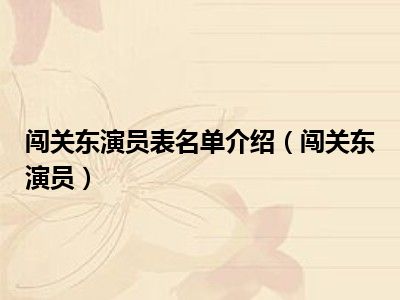闯关东演员表名单介绍(闯关东演员)
