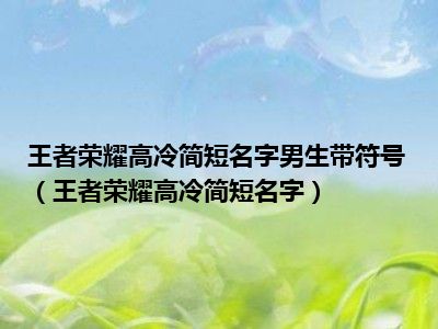 王者荣耀高冷简短名字男生带符号(王者荣耀高冷简短名字)
