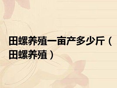 大家好,小陆来为大家解答以上的问题。田螺养殖一亩产多少斤,田螺养殖这个很多人还不知道,现在让我们一起来看看吧!