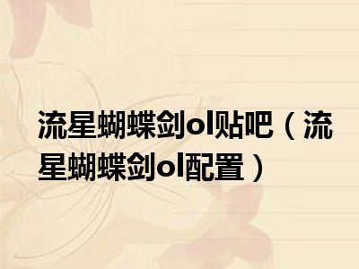 流星蝴蝶剑ol贴吧(流星蝴蝶剑ol配置)