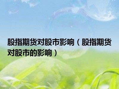 大家好,小陆来为大家解答以上的问题。股指期货对股市影响,股指期货对股市的影响这个很多人还不知道,现在让我们一起来看看吧!