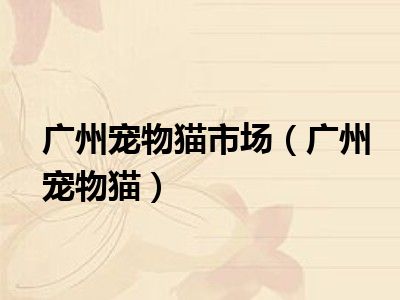 大家好,小陆来为大家解答以上的问题。广州宠物猫市场,广州宠物猫这个很多人还不知道,现在让我们一起来看看吧!