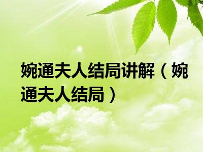 婉通夫人结局讲解(婉通夫人结局)
