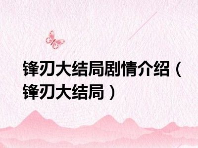 大家好,小陆来为大家解答以上的问题。锋刃大结局剧情介绍,锋刃大结局这个很多人还不知道,现在让我们一起来看看吧!