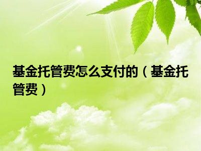 大家好,小陆来为大家解答以上的问题。基金托管费怎么支付的,基金托管费这个很多人还不知道,现在让我们一起来看看吧!