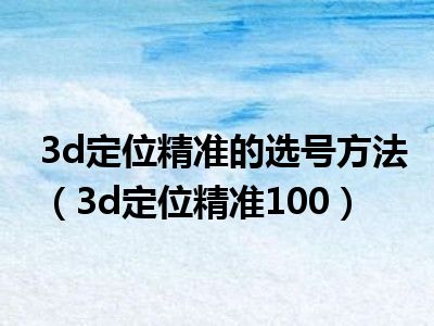 大家好,小陆来为大家解答以上的问题。3d定位精准的选号方法,3d定位精准100这个很多人还不知道,现在让我们一起来看看吧!