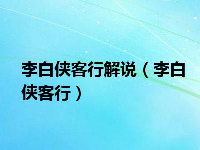 大家好,小陆来为大家解答以上的问题。李白侠客行解说,李白侠客行这个很多人还不知道,现在让我们一起来看看吧!