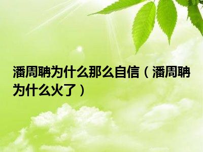 潘周聃为什么那么自信(潘周聃为什么火了)