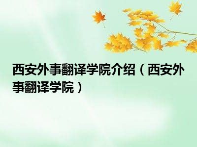大家好,小陆来为大家解答以上的问题。西安外事翻译学院介绍,西安外事翻译学院这个很多人还不知道,现在让我们一起来看看吧!