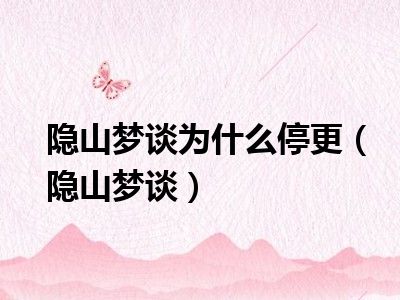 大家好,小陆来为大家解答以上的问题。隐山梦谈为什么停更,隐山梦谈这个很多人还不知道,现在让我们一起来看看吧!