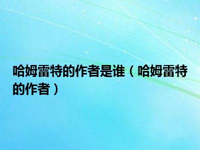 哈姆雷特的作者是谁(哈姆雷特的作者)