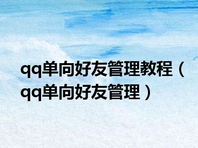 大家好,小陆来为大家解答以上的问题。qq单向好友管理教程,qq单向好友管理这个很多人还不知道,现在让我们一起来看看吧!