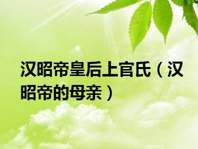 大家好,小陆来为大家解答以上的问题。汉昭帝皇后上官氏,汉昭帝的母亲这个很多人还不知道,现在让我们一起来看看吧!