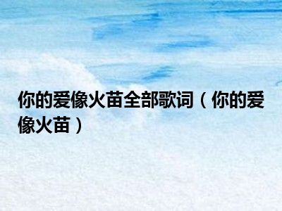 大家好,小陆来为大家解答以上的问题。你的爱像火苗全部歌词,你的爱像火苗这个很多人还不知道,现在让我们一起来看看吧!