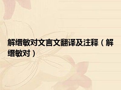 大家好,小豆豆来为大家解答以上的问题。解缙敏对文言文翻译及注释,解缙敏对这个很多人还不知道,现在让我们一起来看看吧!
