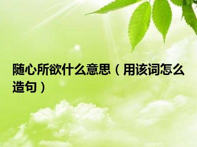欢迎观看本篇文章,小升来为大家解答以上问题。随心所欲什么意思,用该词怎么造句很多人还不知道,现在让我们一起来看看吧!