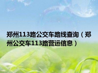 郑州113路公交车路线查询(郑州公交车113路营运信息)