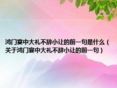 鸿门宴中大礼不辞小让的前一句是什么(关于鸿门宴中大礼不辞小让的前一句)