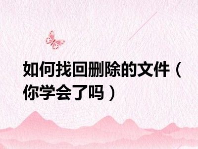 欢迎观看本篇文章,小升来为大家解答以上问题。如何找回删除的文件,你学会了吗很多人还不知道,现在让我们一起来看看吧!