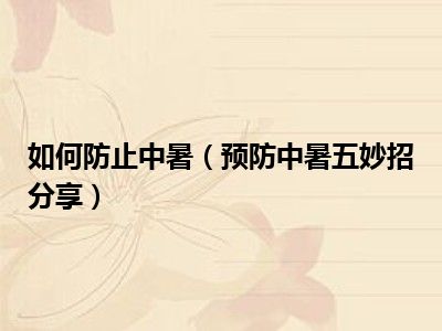 欢迎观看本篇文章,小升来为大家解答以上问题。如何防止中暑,预防中暑五妙招分享很多人还不知道,现在让我们一起来看看吧!