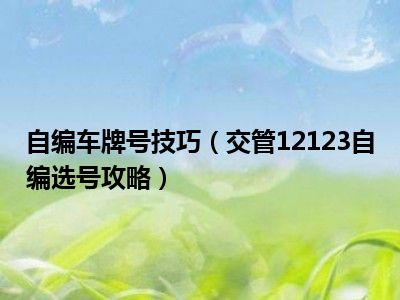 欢迎观看本篇文章,小升来为大家解答以上问题。自编车牌号技巧,交管12123自编选号攻略很多人还不知道,现在让我们一起来看看吧!