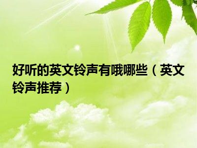 好听的英文铃声有哦哪些(英文铃声推荐)