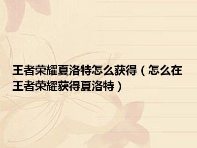 王者荣耀夏洛特怎么获得(怎么在王者荣耀获得夏洛特)