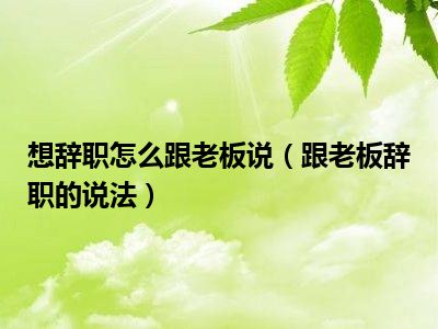 想辞职怎么跟老板说(跟老板辞职的说法)