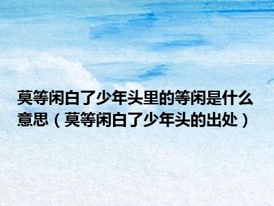 欢迎观看本篇文章,小升来为大家解答以上问题。莫等闲白了少年头里的等闲是什么意思,莫等闲白了少年头的出处很多人还不知道,现在让我们一起来看看吧!