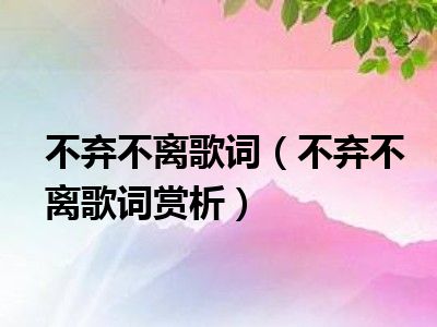 欢迎观看本篇文章,小升来为大家解答以上问题。不弃不离歌词,不弃不离歌词赏析很多人还不知道,现在让我们一起来看看吧!