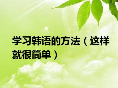 欢迎观看本篇文章,小升来为大家解答以上问题。学习韩语的方法,这样就很简单很多人还不知道,现在让我们一起来看看吧!