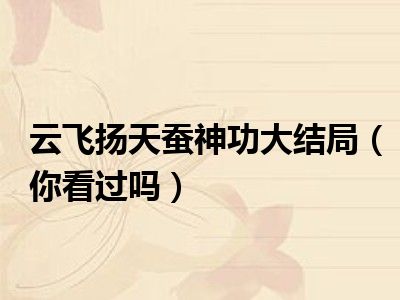 欢迎观看本篇文章,小升来为大家解答以上问题。云飞扬天蚕神功大结局,你看过吗很多人还不知道,现在让我们一起来看看吧!
