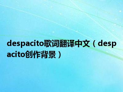 欢迎观看本篇文章,小升来为大家解答以上问题。despacito歌词翻译中文,despacito创作背景很多人还不知道,现在让我们一起来看看吧!