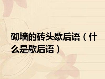 欢迎观看本篇文章,小升来为大家解答以上问题。砌墙的砖头歇后语,什么是歇后语很多人还不知道,现在让我们一起来看看吧!