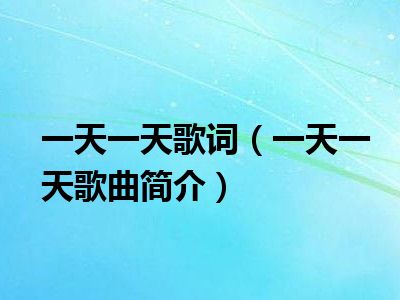 欢迎观看本篇文章,小升来为大家解答以上问题。一天一天歌词,一天一天歌曲简介很多人还不知道,现在让我们一起来看看吧!