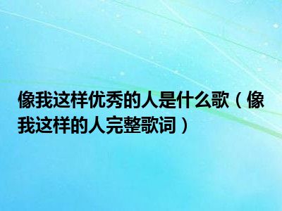欢迎观看本篇文章,小升来为大家解答以上问题。像我这样优秀的人是什么歌,像我这样的人完整歌词很多人还不知道,现在让我们一起来看看吧!