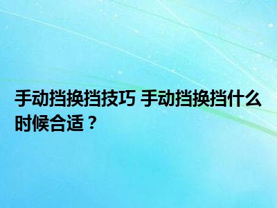 手动挡换挡技巧 手动挡换挡什么时候合适?