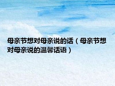 母亲节想对母亲说的话(母亲节想对母亲说的温馨话语)